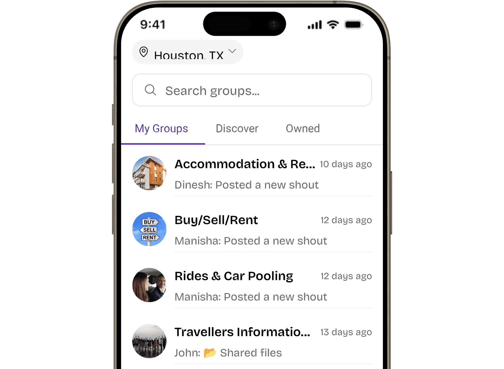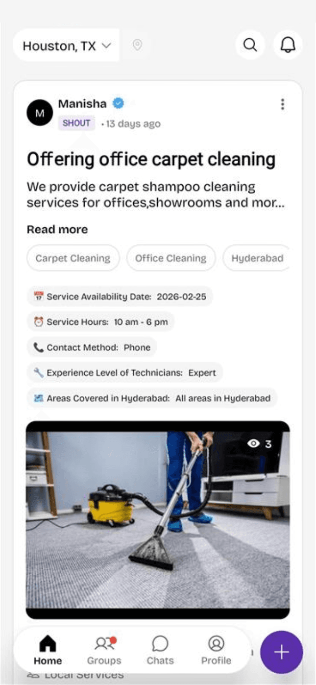 Discover groups near you and post AI-powered Shouts to meet the right people instantly.