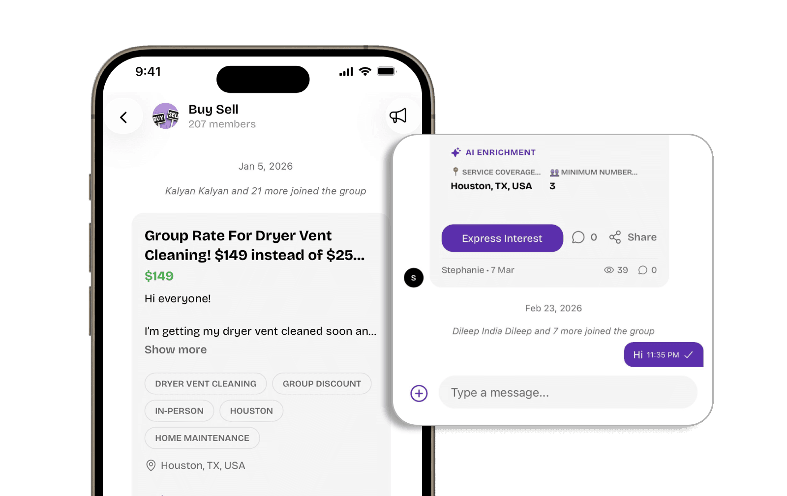 Ask, buy, sell, hire, or find anything through active groups and real conversations.