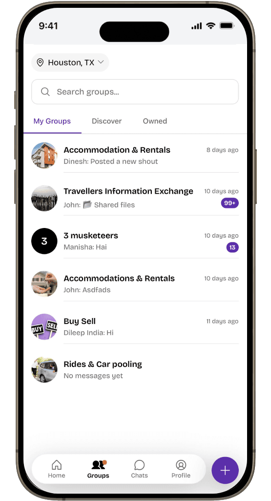 Ask, buy, sell, hire, or find anything through active groups and real conversations.