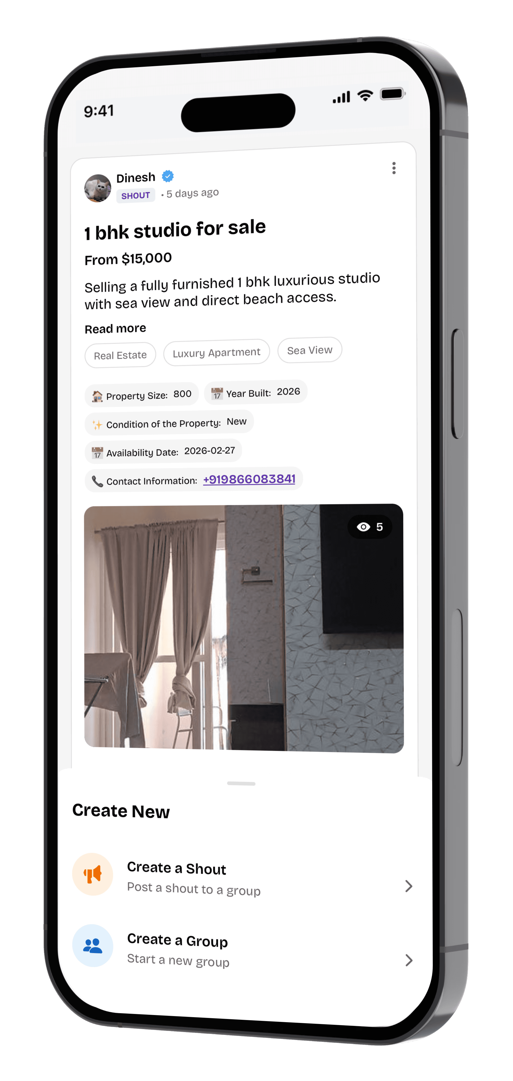 Discover open communities and start AI-powered Shouts that reach the right people and spark real conversations.