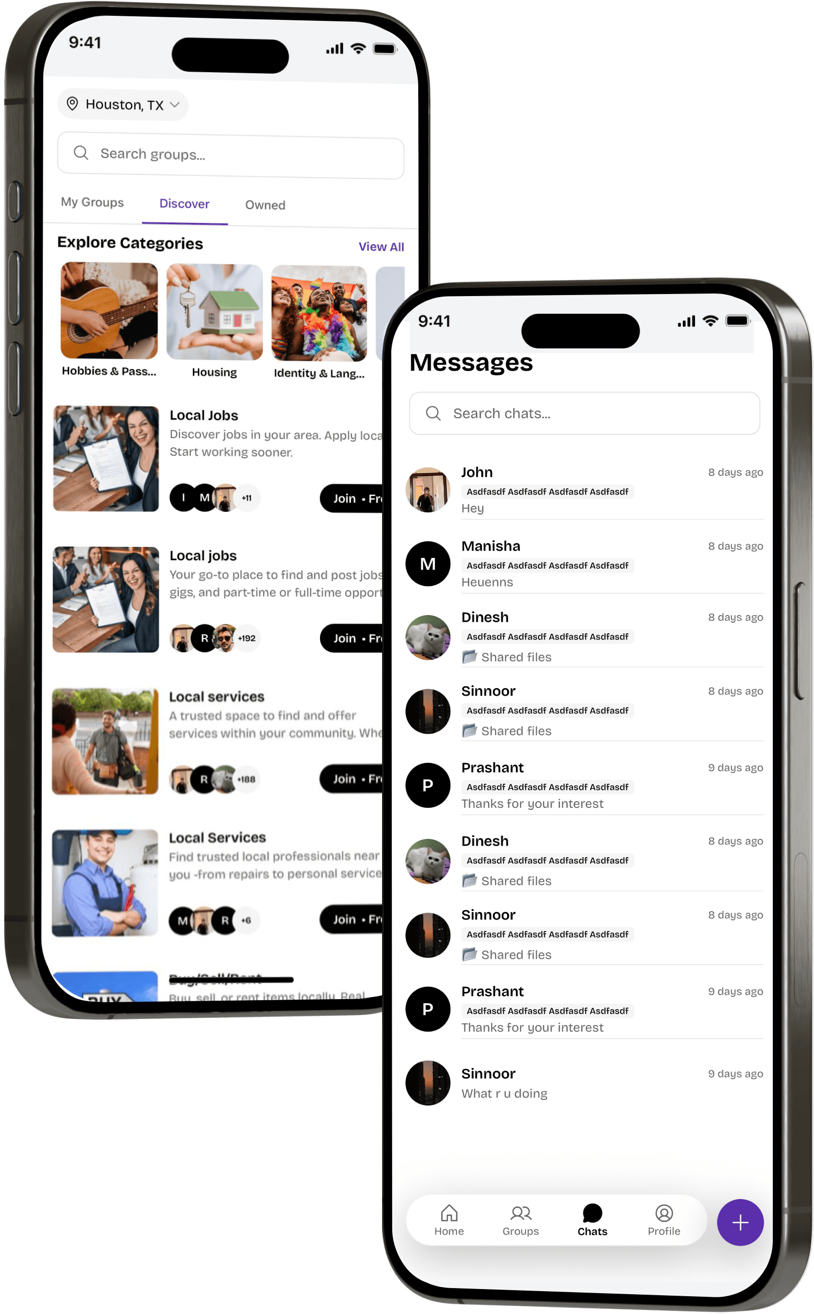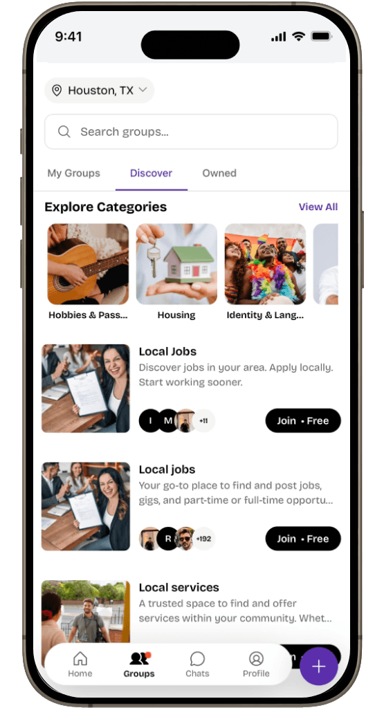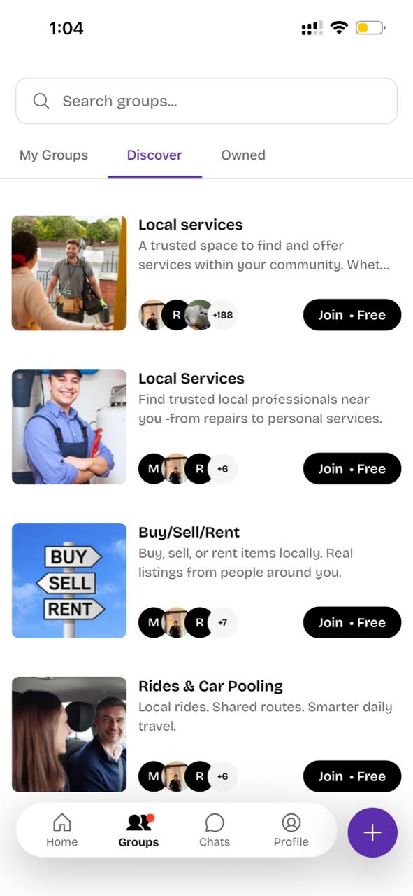 Find and join communities around your interests, profession, or city — no invite links needed.